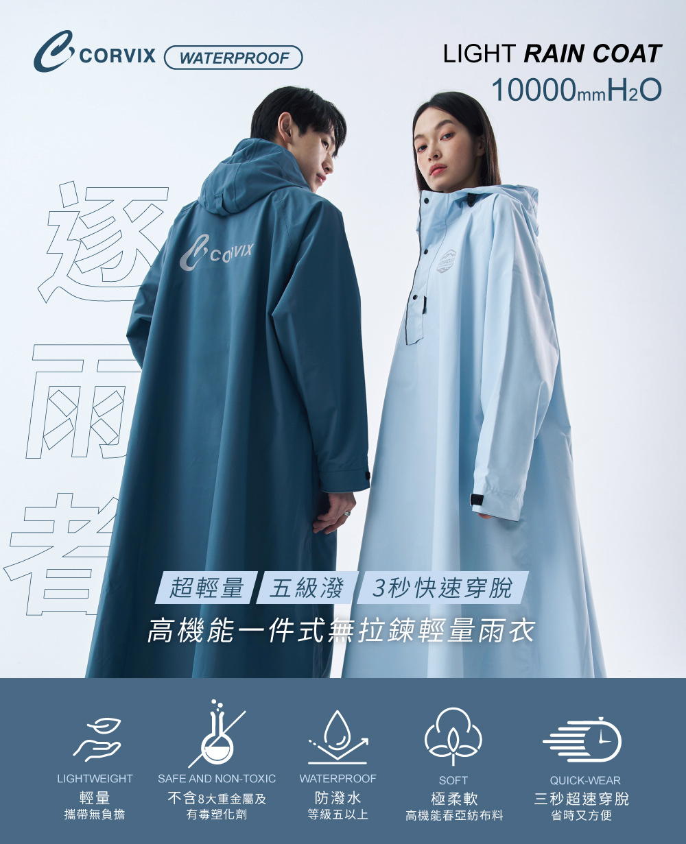 ‧3 秒快速穿脫 套頭式設計,適合突發降雨