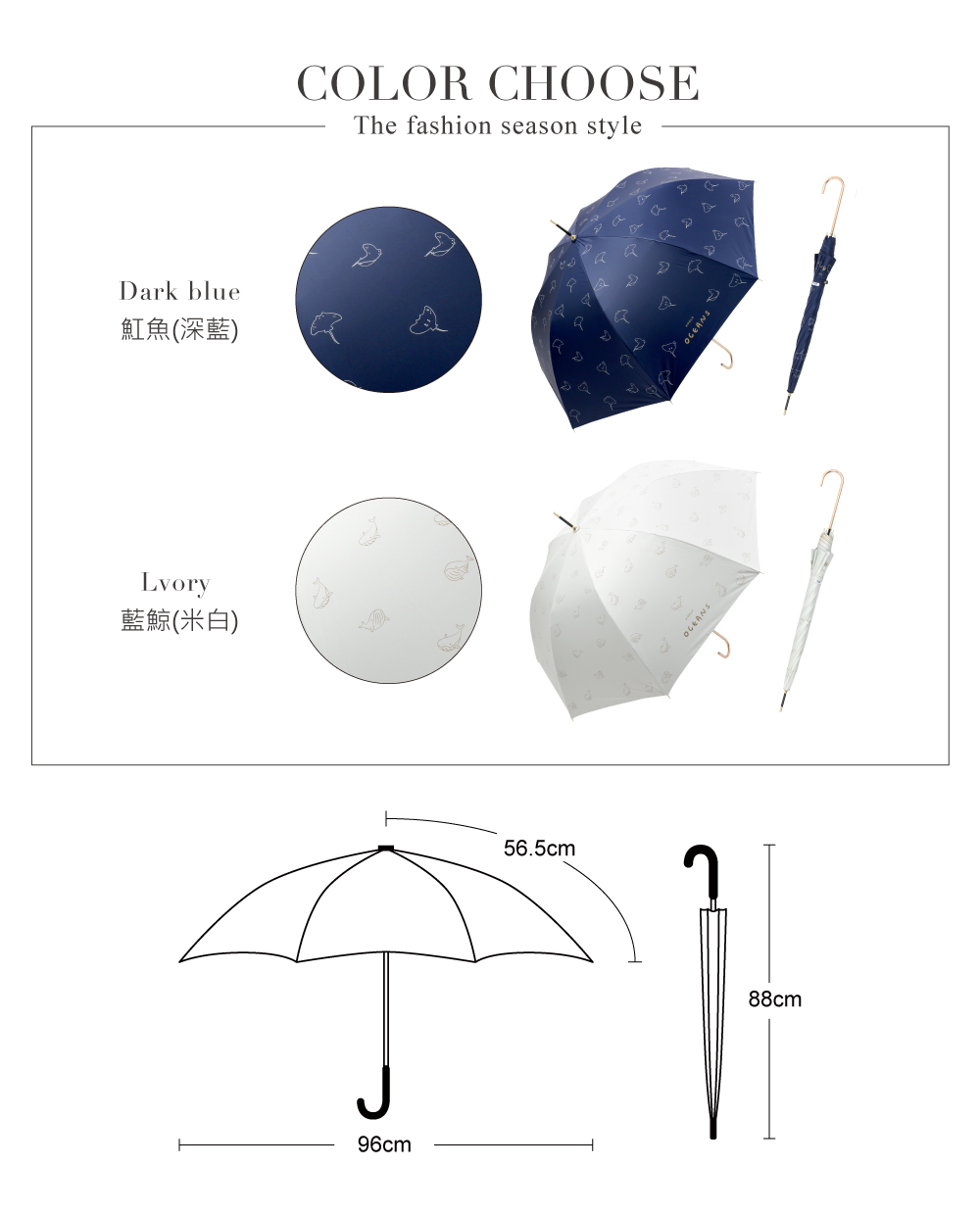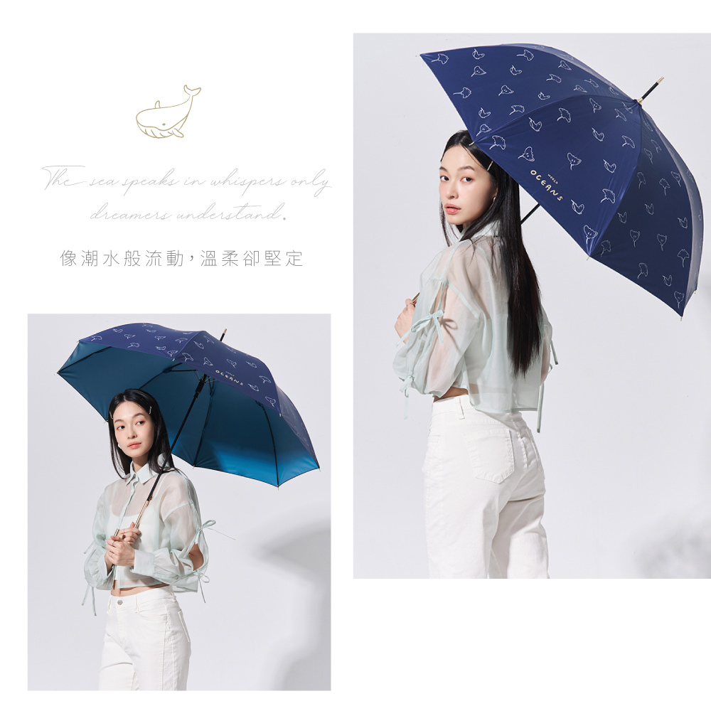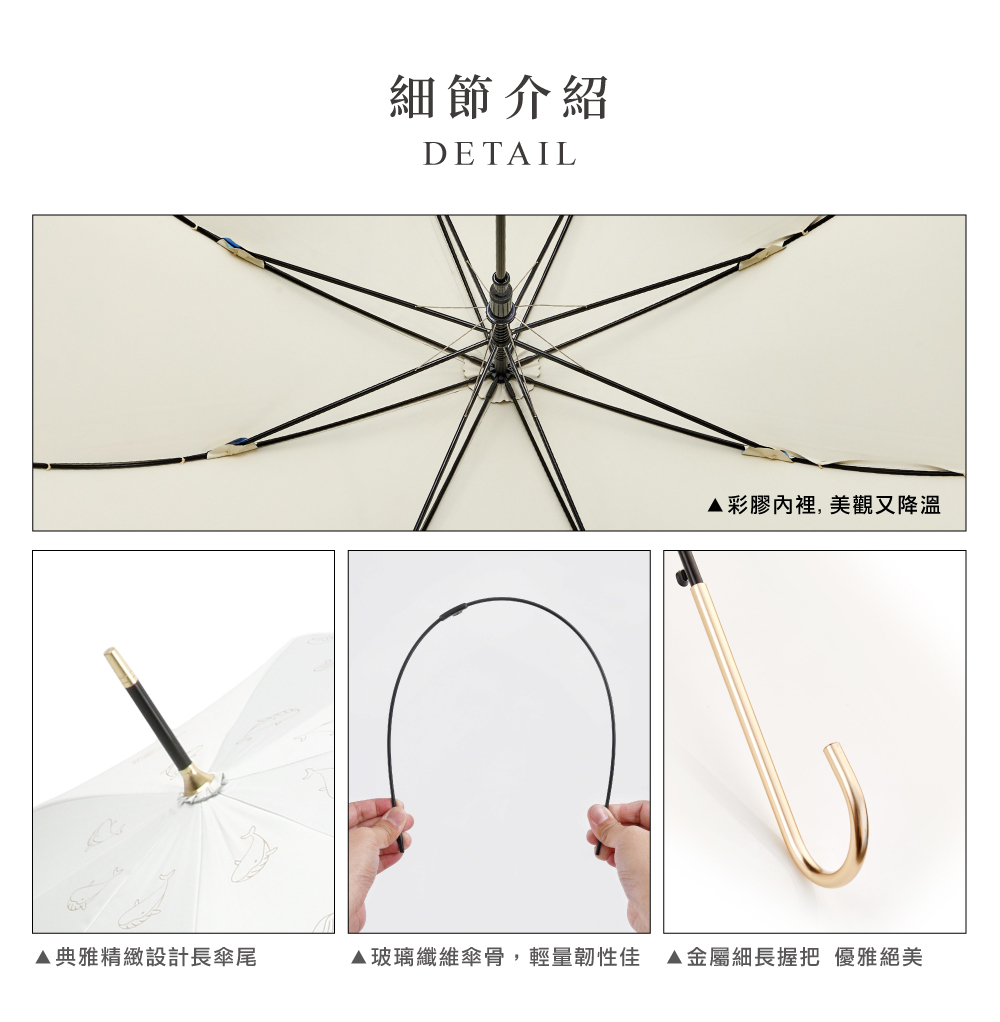 【品名】Tcf. 海洋故事 全遮光彩膠抗UV自動直傘(金柄)