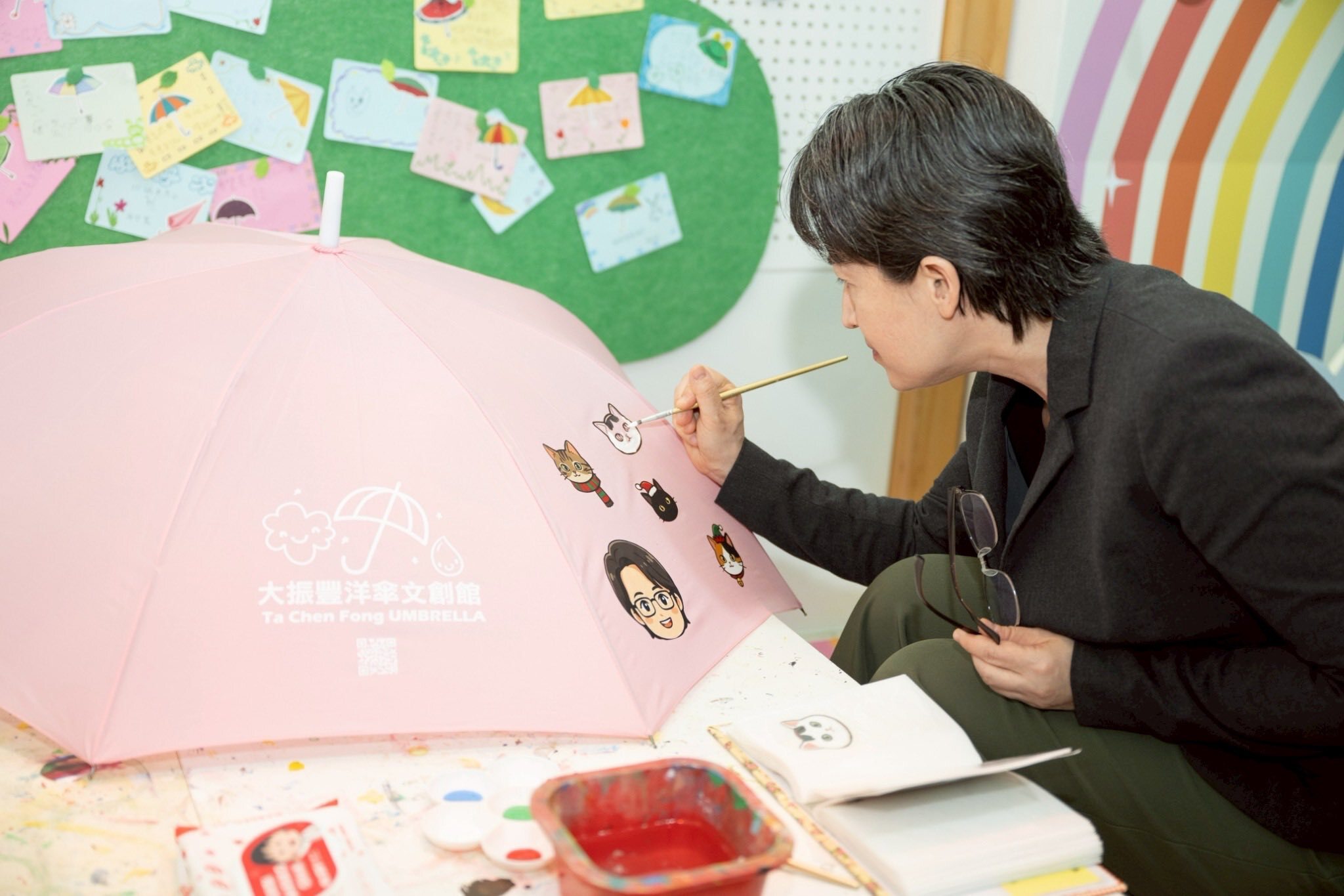 前年金舶獎,Tcf.大振豐洋傘的老闆戴著有雨傘圖案的領帶,讓我印象深刻。他邀請我去他們的文創館走走,年前終於有機會前往參觀,還收穫了一把我專屬的手繪貓咪傘。