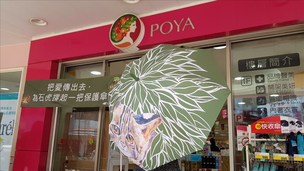 成立逾50年的大振豐洋傘,自創業以來,從生產、批發到銷售,以貼心設計兼顧職人美學的標準,創立台灣自有品牌,每年銷售逾200萬把晴雨傘,傘的普及率居全台之冠! 此次台灣洋傘龍頭大振豐,與全國最大美妝生活用品連鎖店寶雅合作,總計有2,484支「發現石虎手繪傘」,在寶雅全省206家分店全面上架販售,直骨自動傘、自動開收傘各1,242支,每支售價690元,每售出一支,大振豐即捐贈5%義賣所得予「台灣石虎保育協會」,讓更多喜歡石虎周邊商品的人能夠就近購買,藉由石虎保育與傘的結合,希望大家在撐起傘的同時,也能體認到石虎保育的重要性。