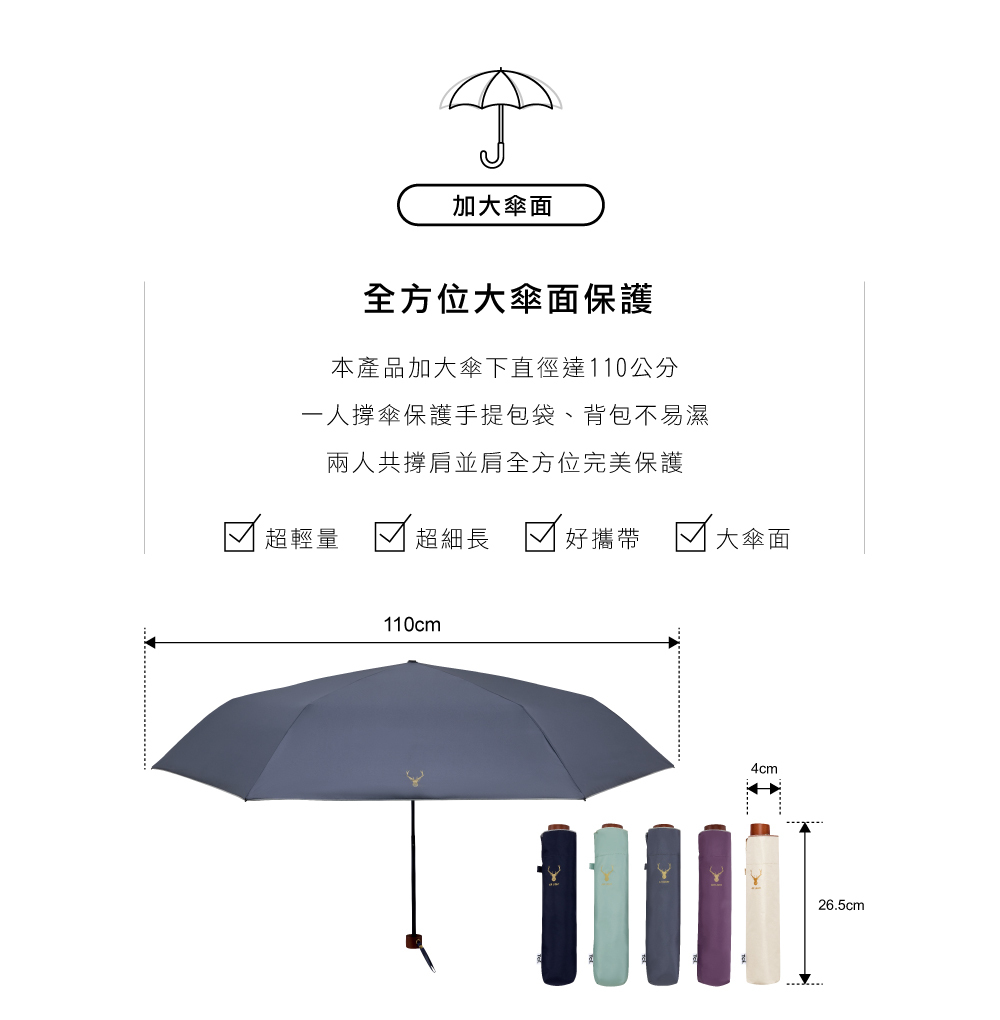 ✔加大傘面,傘下直徑加大至110cm,背著背包也不怕淋濕