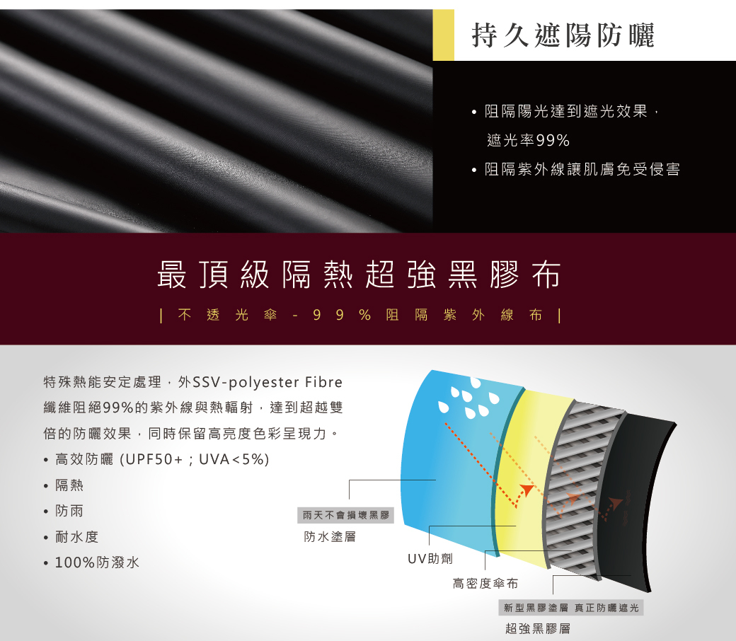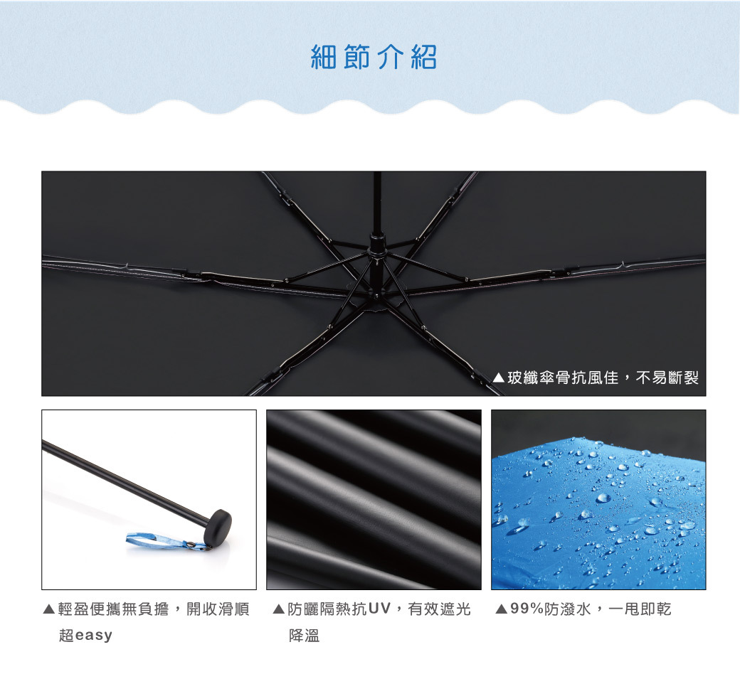 ‧玻璃纖維傘骨,彈性堅韌抗風