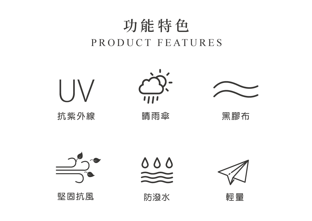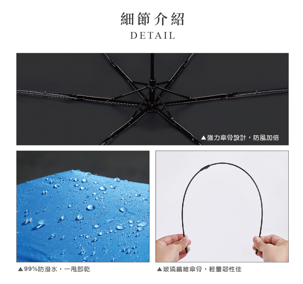 ‧玻璃纖維傘骨,彈性堅韌抗風