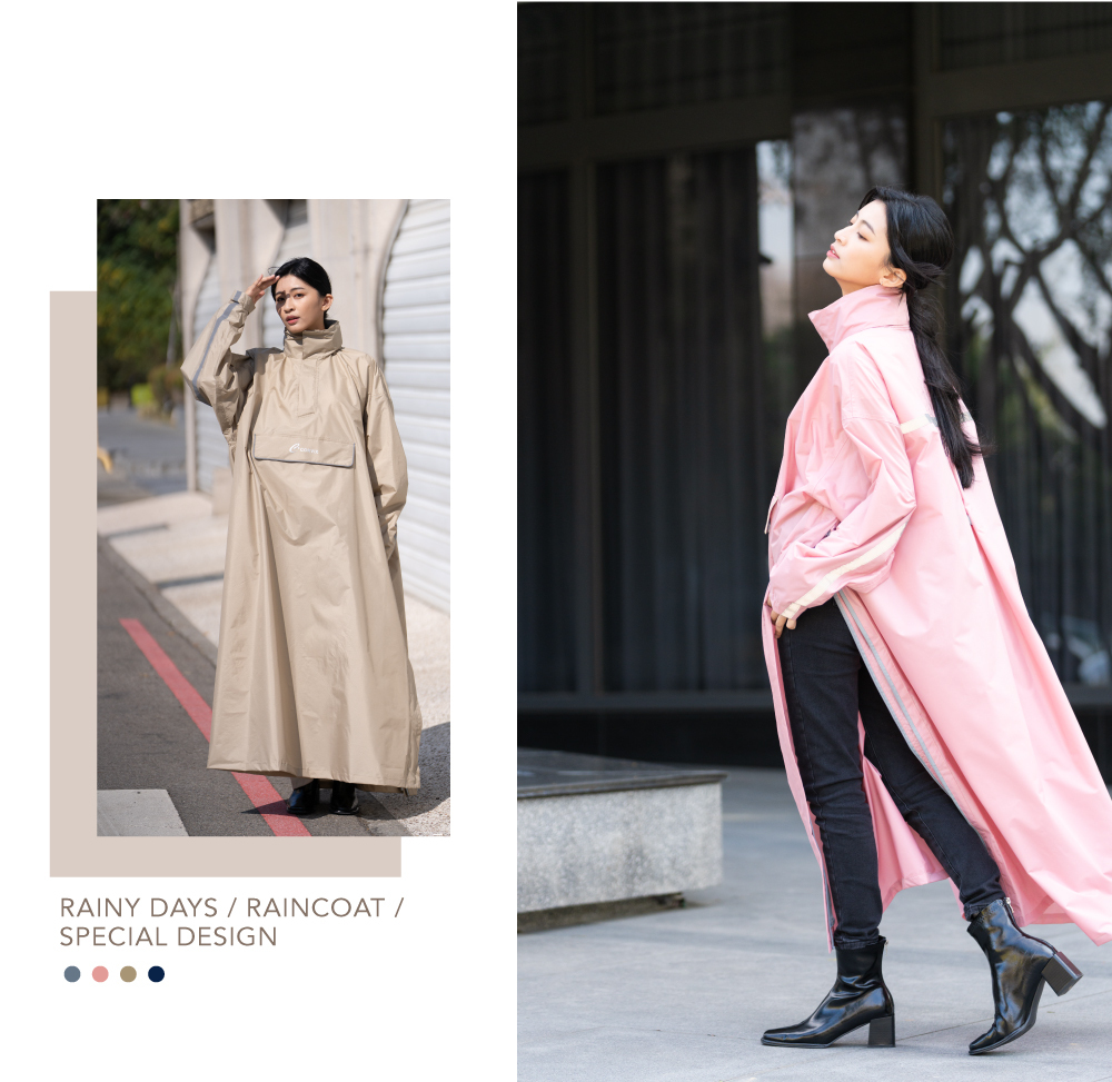 ‧隱藏式雨帽可收納為立領,俐落簡潔