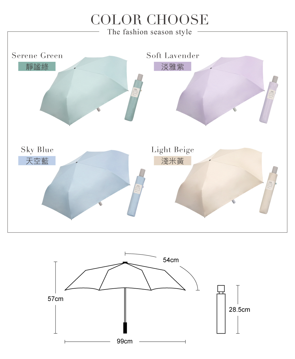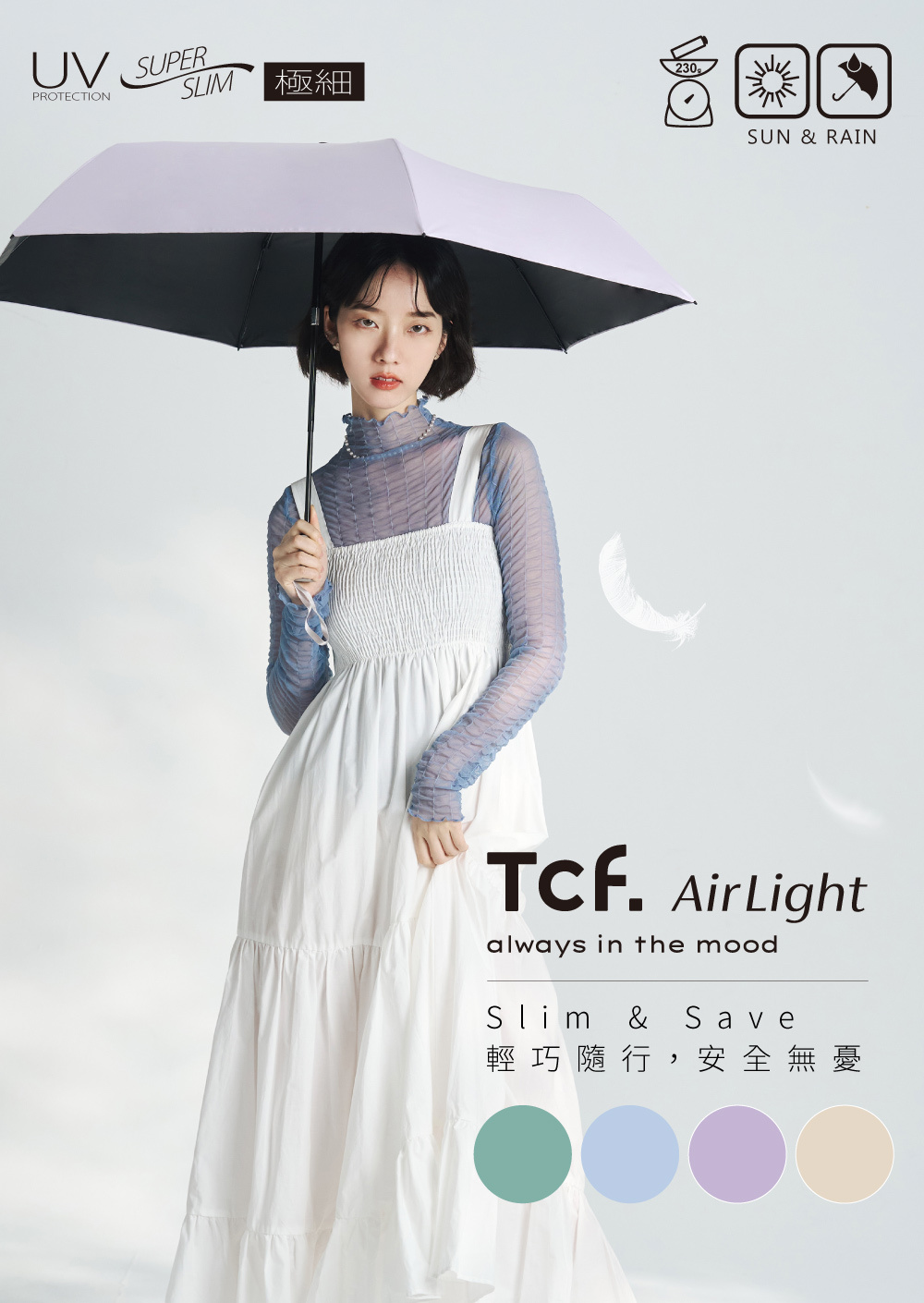 【品名】Airlight_Slim極細柔彩 230g 黑膠 安全自動開收傘