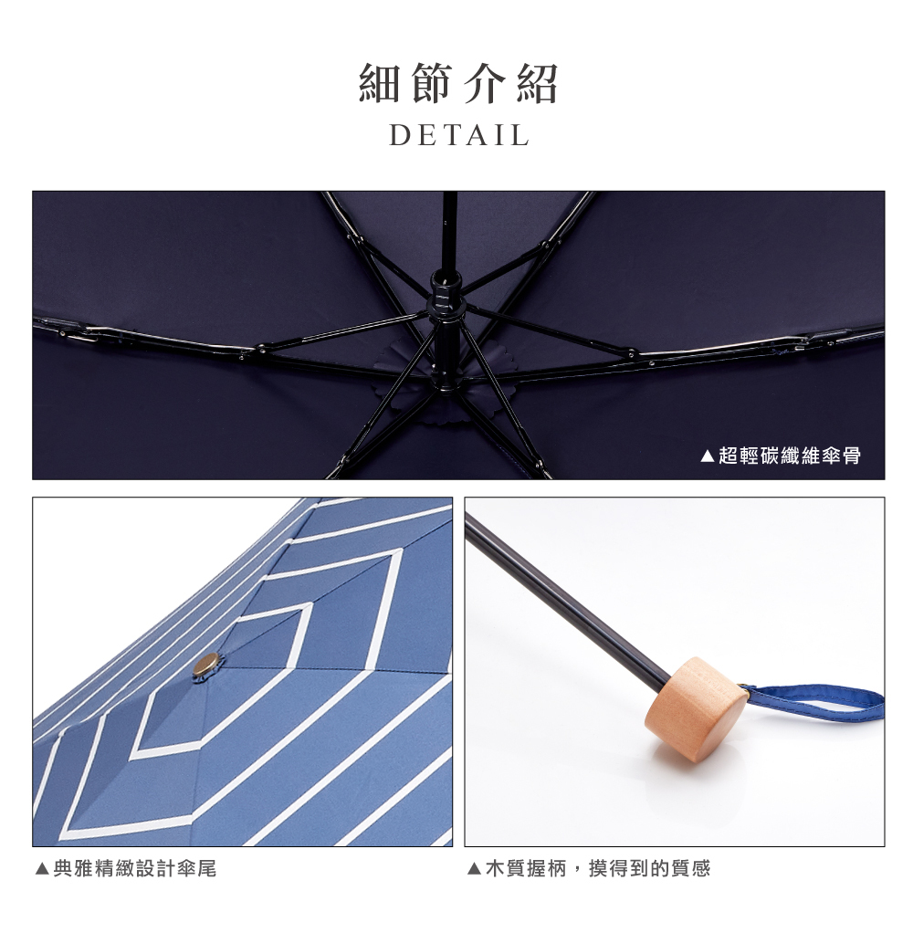 碳纖傘骨搭配黑膠,極致輕量隨身防曬