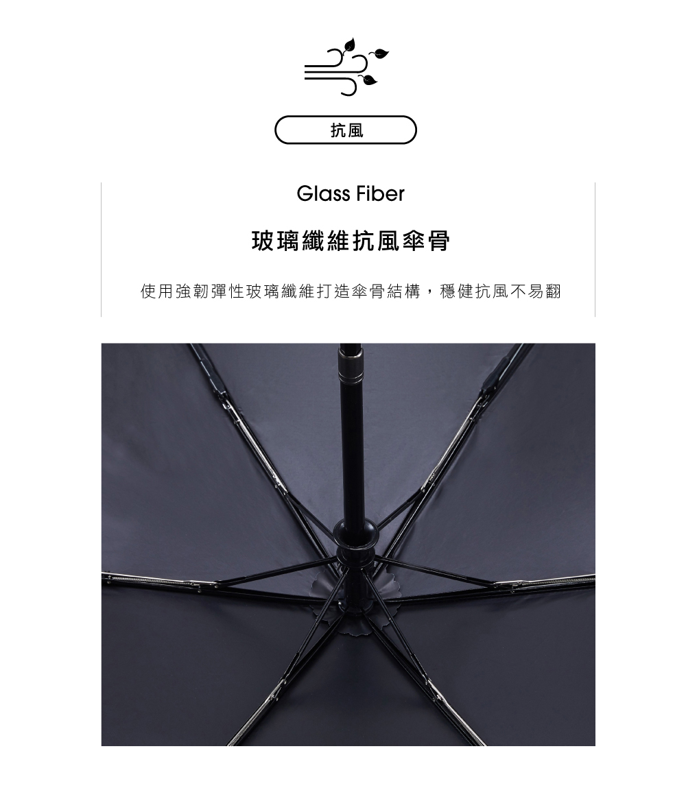 ‧玻璃纖維傘骨,彈性堅韌抗風