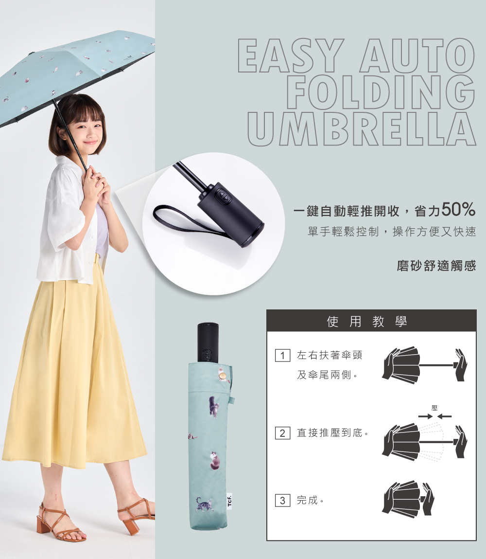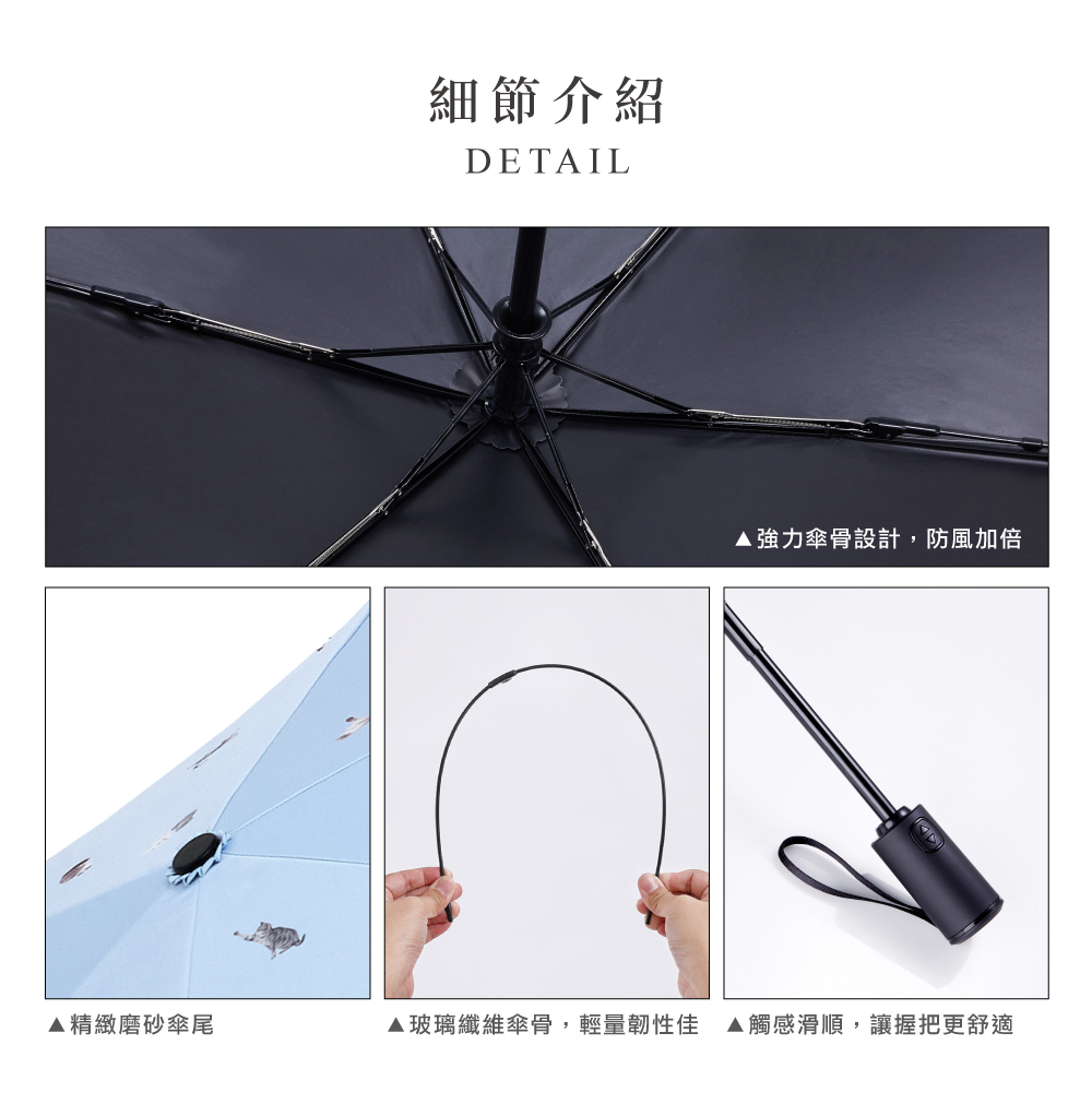 【品名】萌貓百科-全遮光抗UV省力自動開收傘