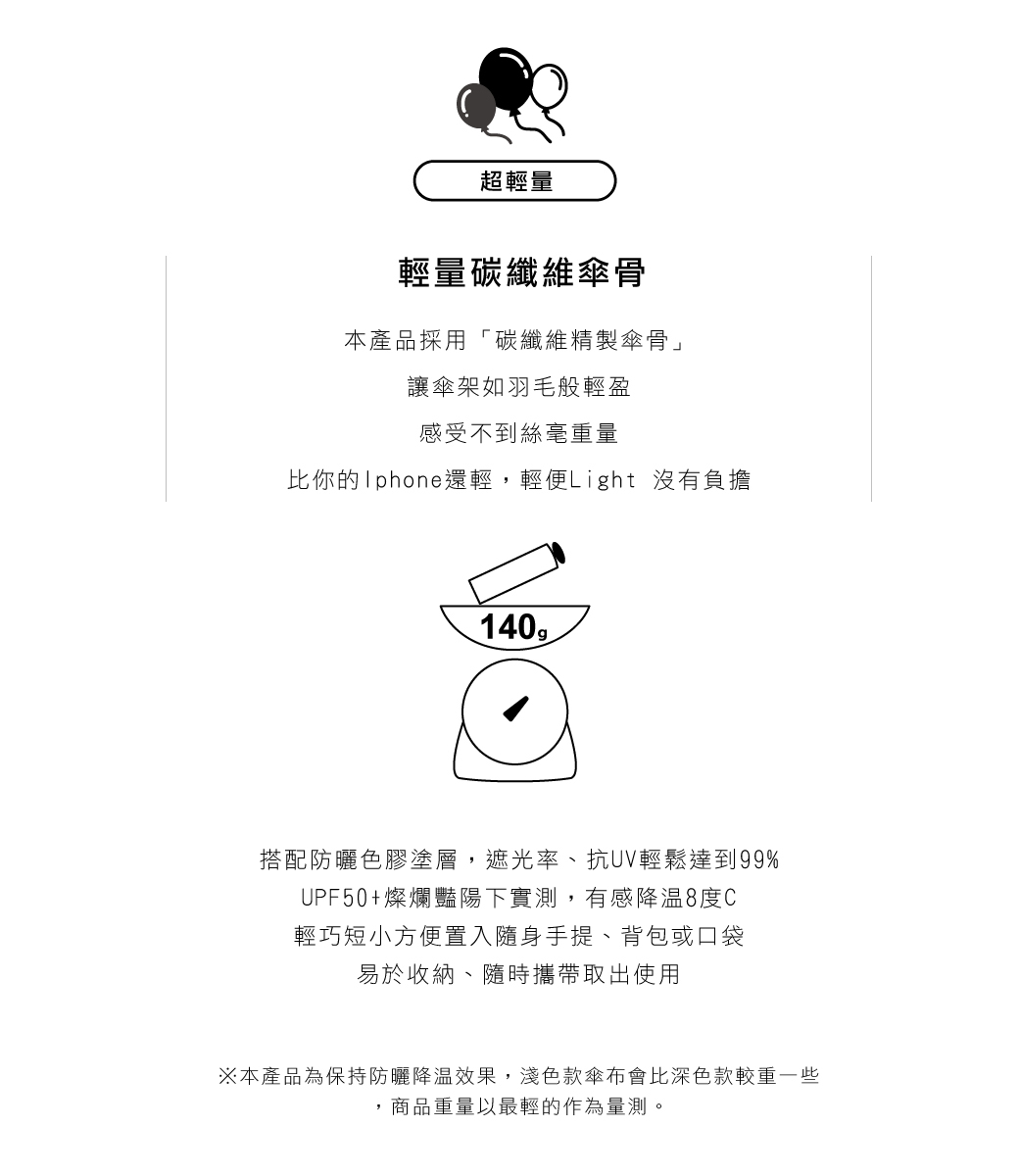 ‧羽毛般輕盈無負擔,碳纖維傘骨