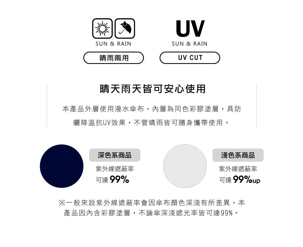 ‧表層超潑水處理,隨身晴雨兩用傘