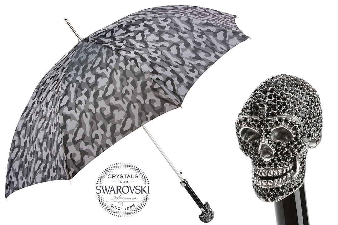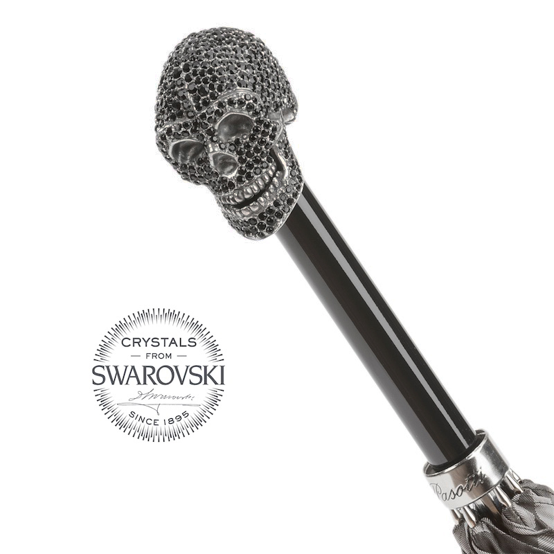 【Pasotti義大利頂級手工傘】骷髏造型X施華洛世奇水晶握把(黑迷彩)