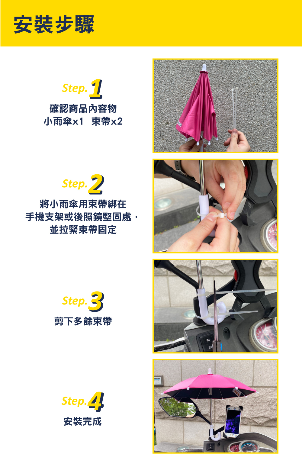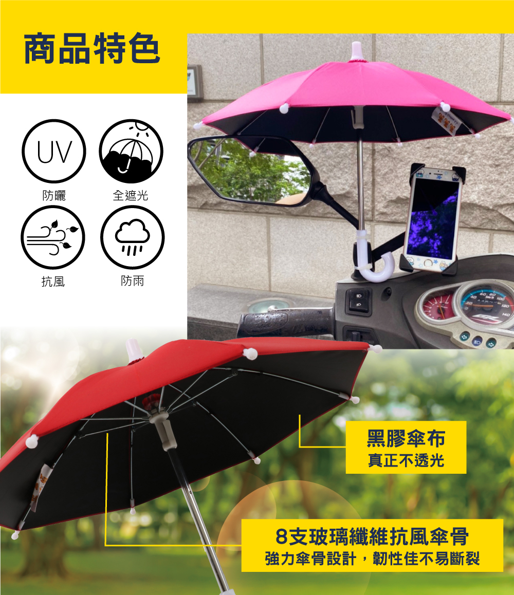 ✔️黑膠不透光傘布,有效遮陽,防止手機過熱
