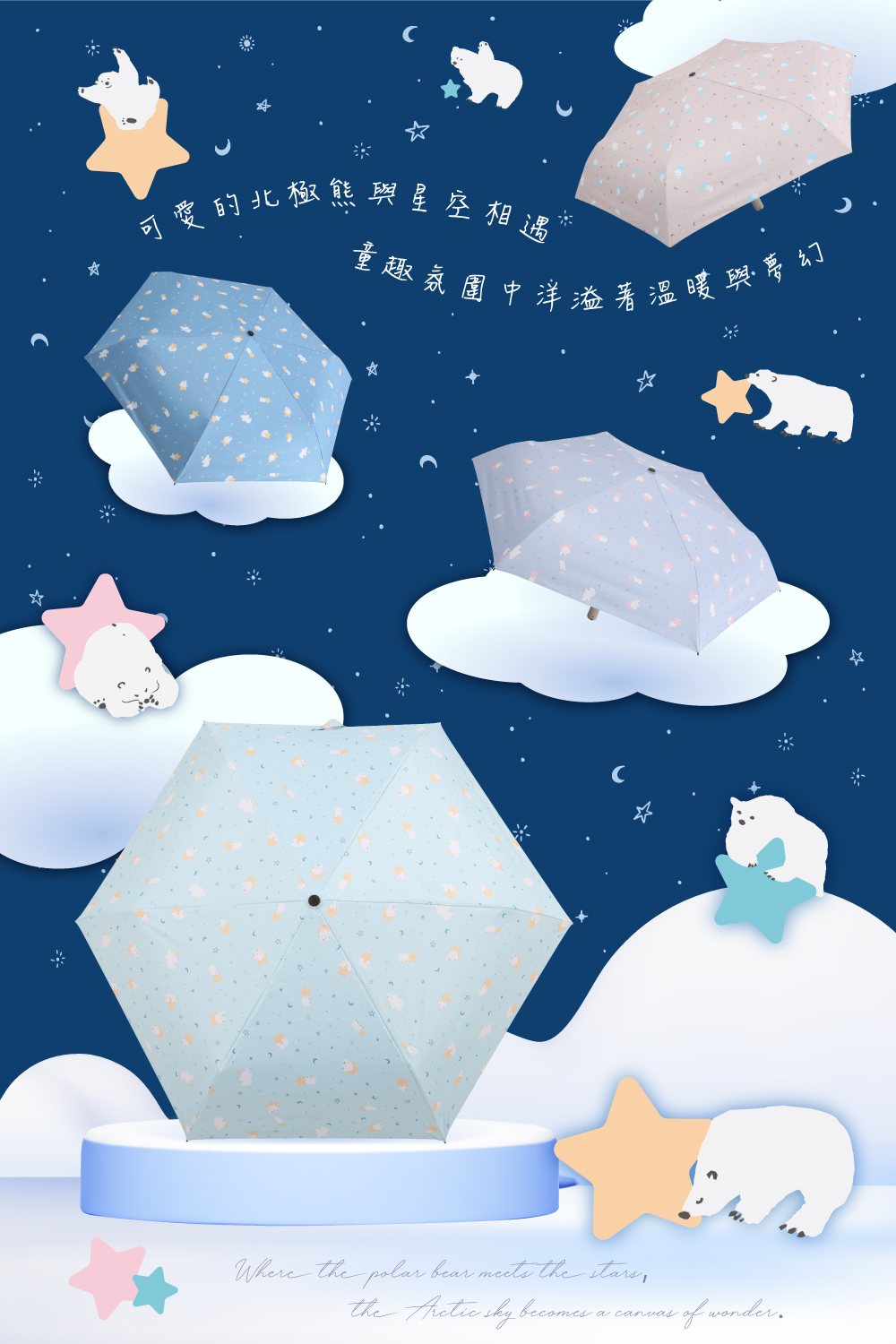 【品名】Feeling cool 北極熊之星 全遮光黑膠自動開收傘