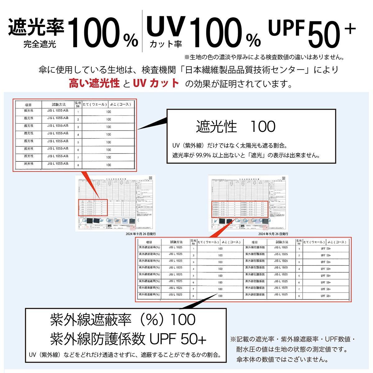 • 紫外線遮蔽率100%、UPF50+、遮光率100%