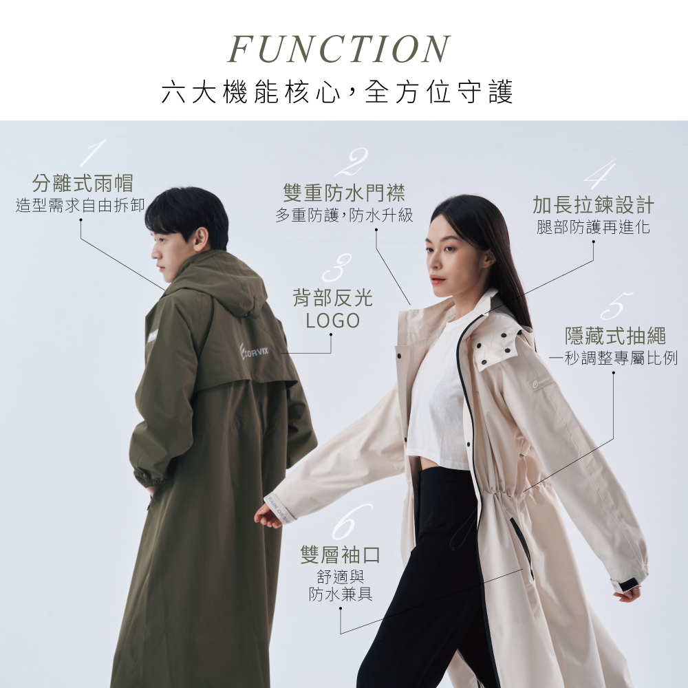 ‧分離式雨帽設計,可依造型與天氣自由拆卸