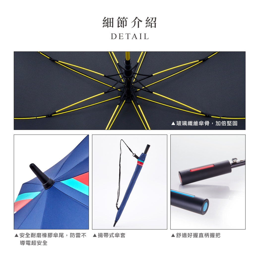 ◾全玻璃纖維傘骨,牢固加倍