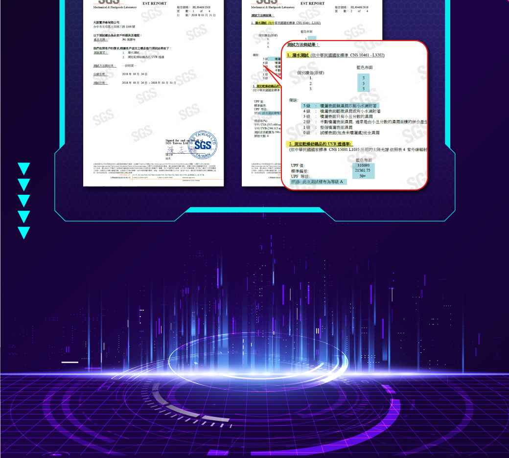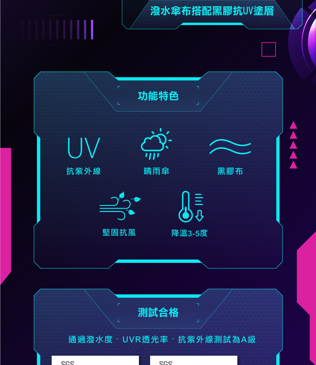 高效防曬 UPF50+ UVA<5% / 80%防潑水