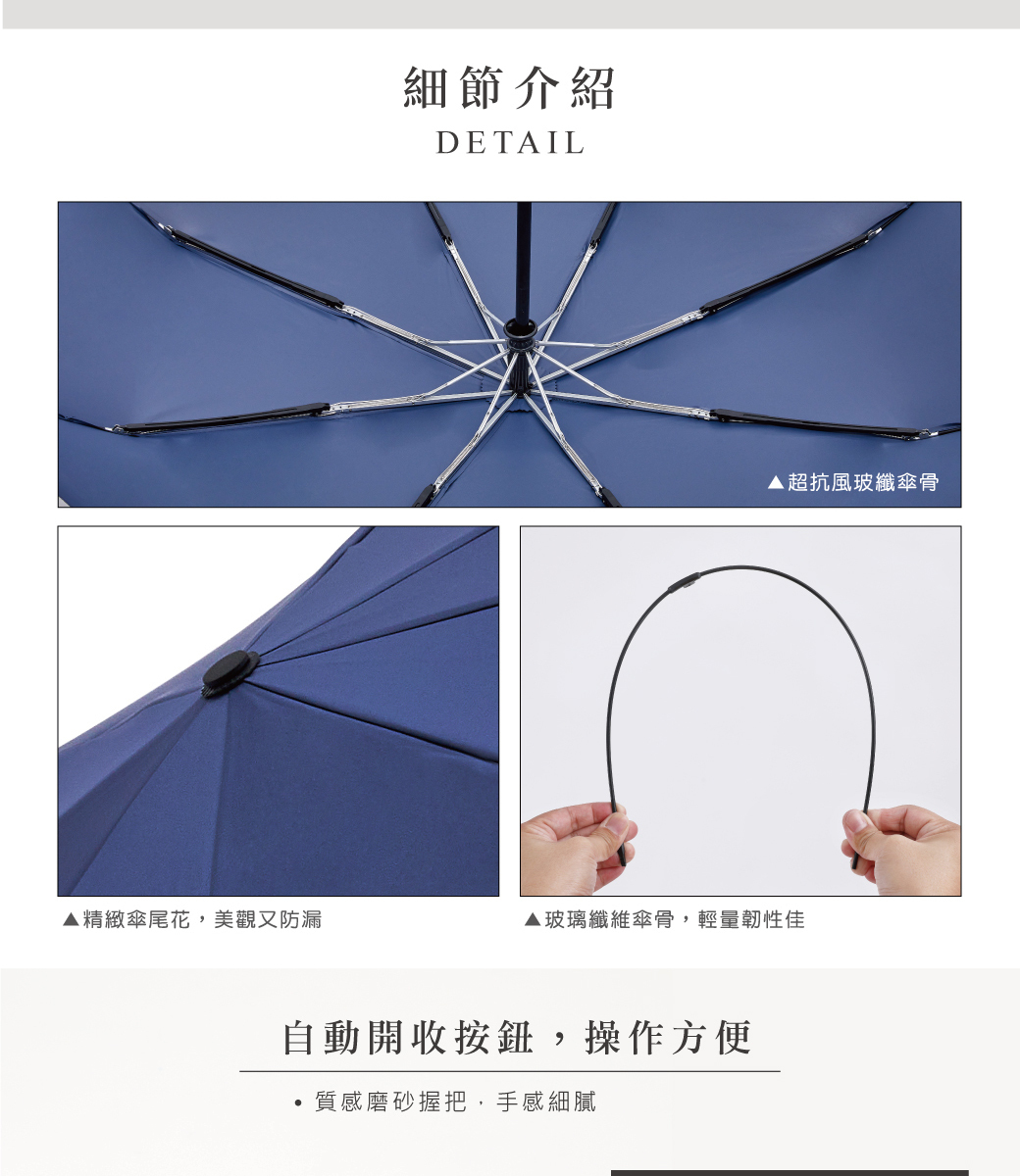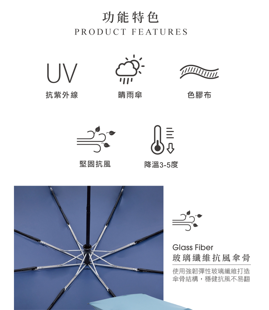‧玻璃纖維傘骨強韌不易斷裂,防風加倍