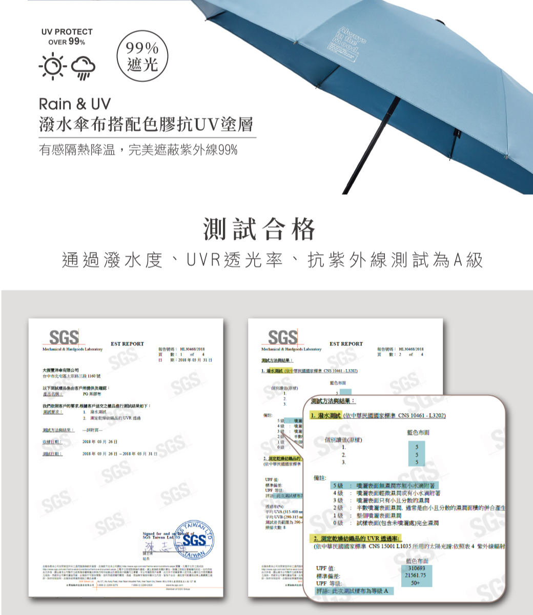 ‧表層超潑水處理,晴雨兩用傘