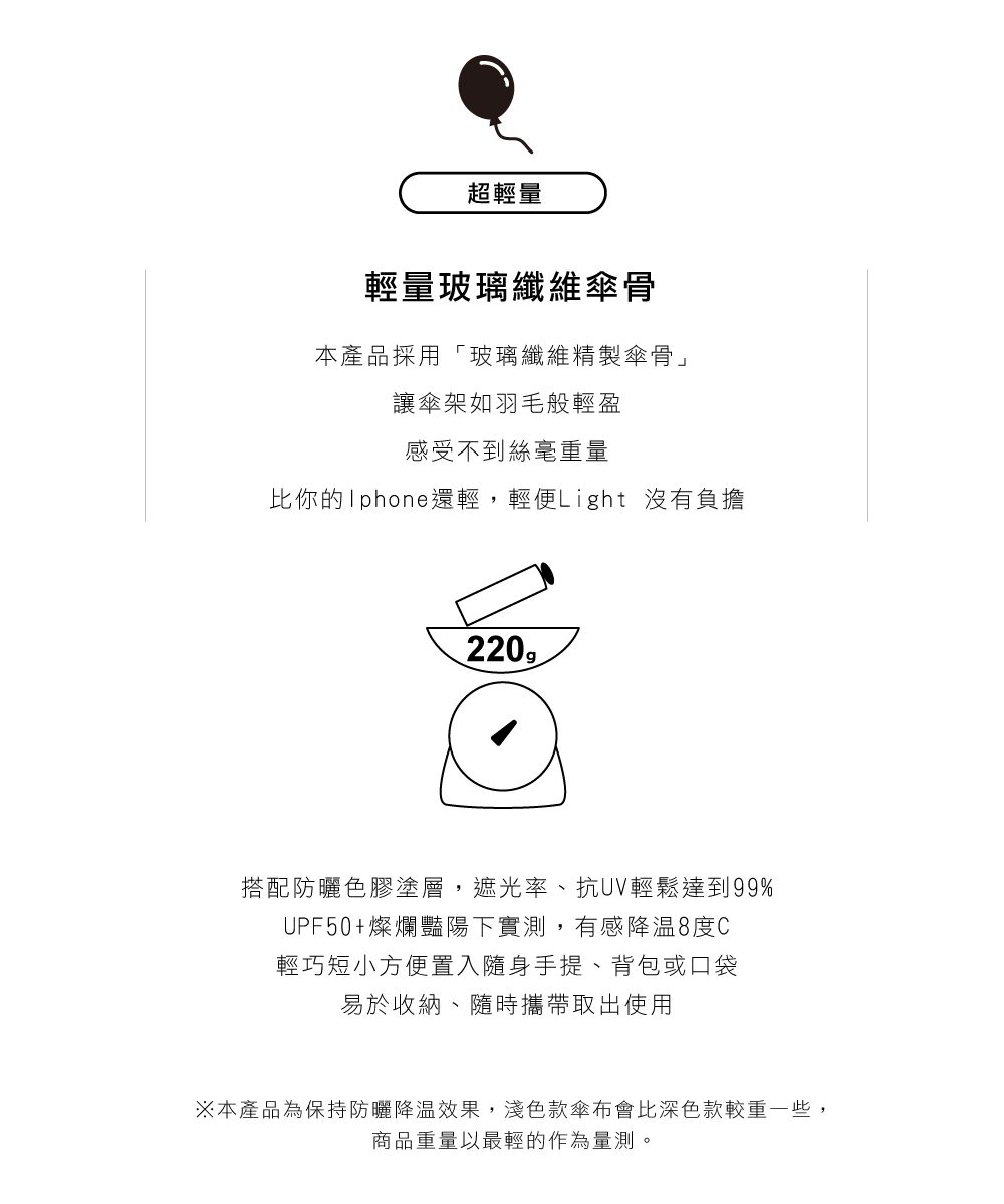 【品名】Airlight 霓彩流光 黑膠超輕量自動開收傘