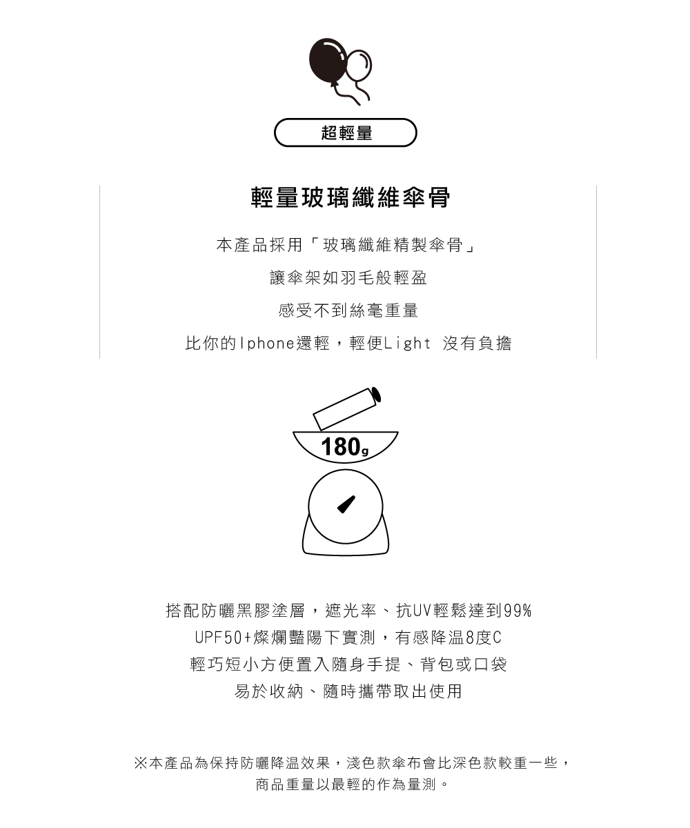 ‧玻璃纖維傘骨,彈性佳耐風抗斷裂