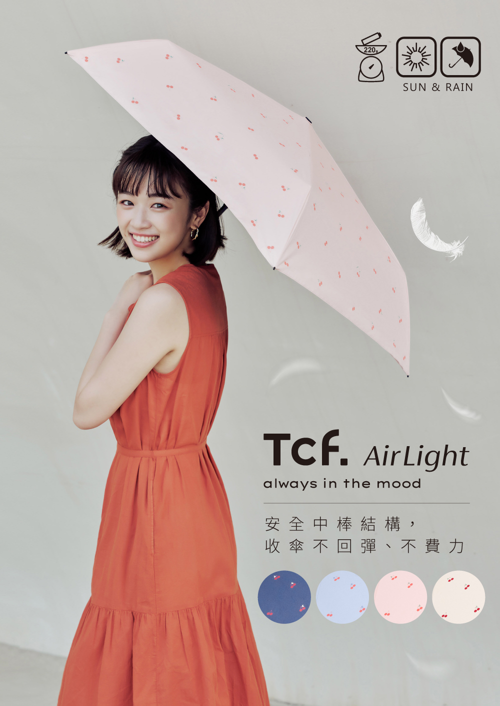 【品名】Airlight山櫻桃-全遮光220g安全式自動開收傘