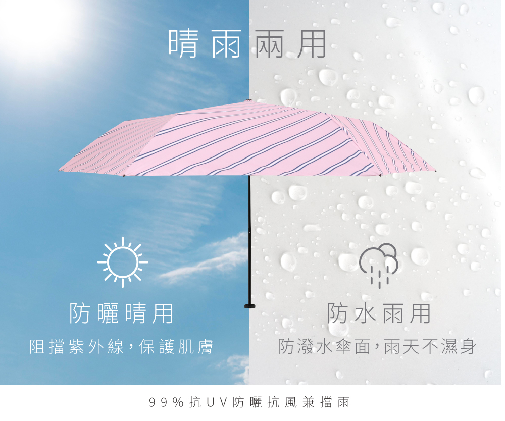 ●表層防潑水處理,隨身晴雨兩用傘