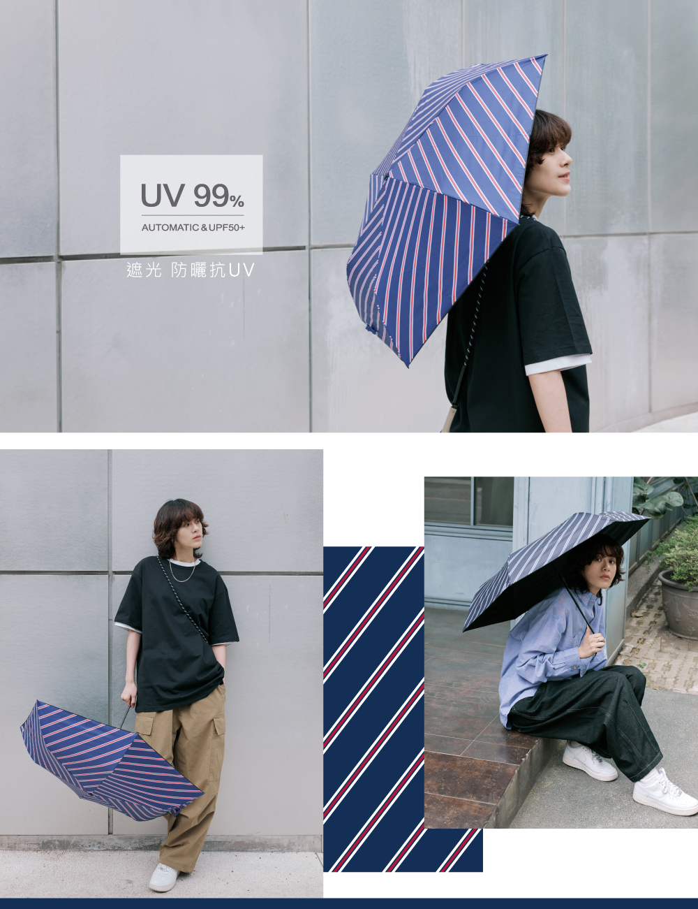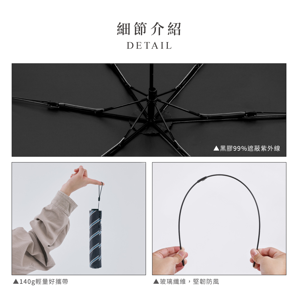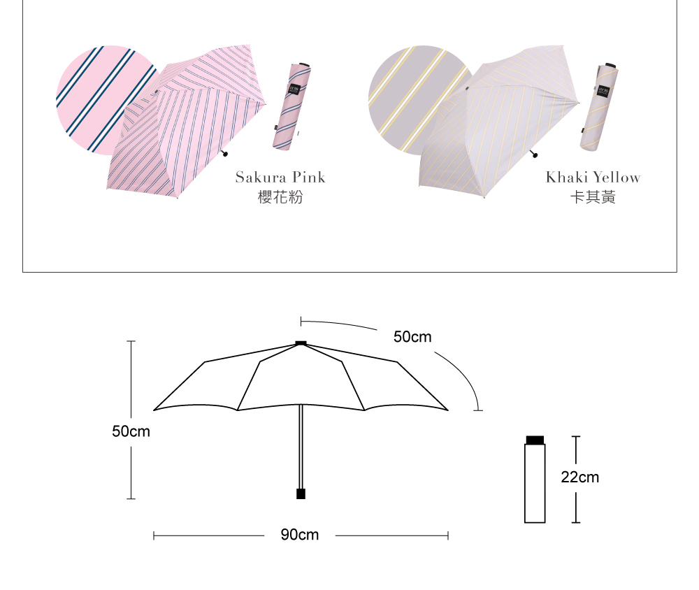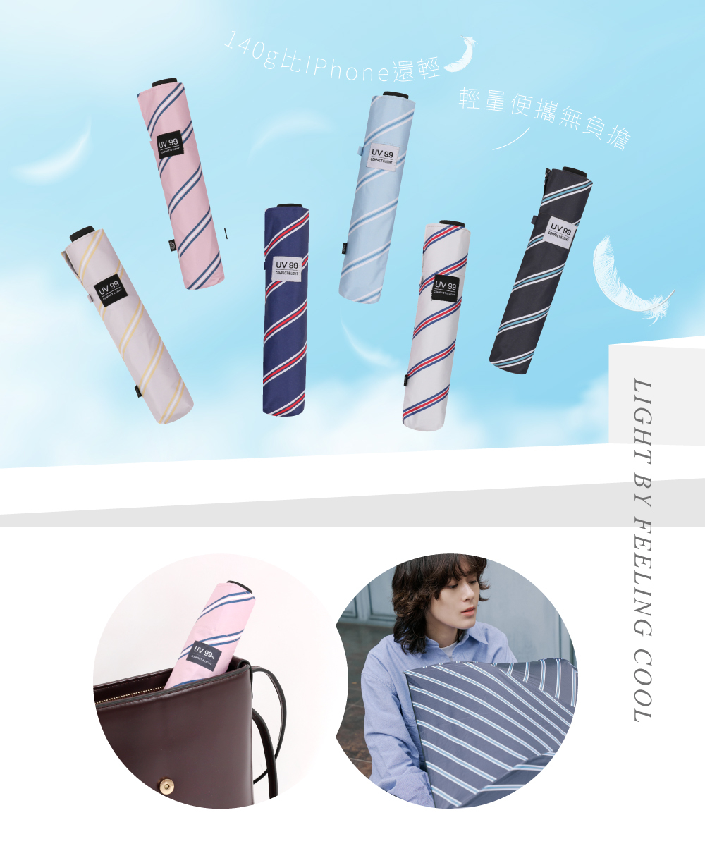 【品名】Feeling cool斜紋和弦- 140g防曬玻纖手開三折傘