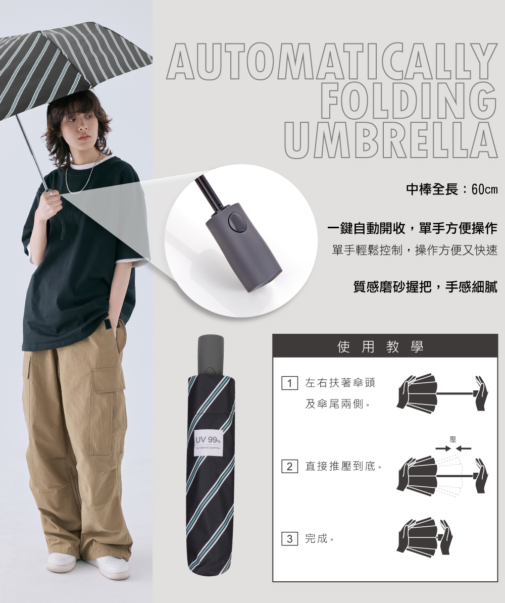 一鍵自開收+舒適磨砂手把