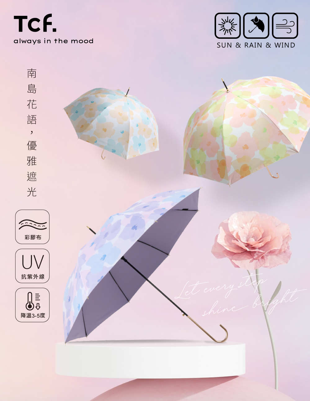 【品名】Tcf. 南島花語 彩膠抗UV自動直傘(金柄)