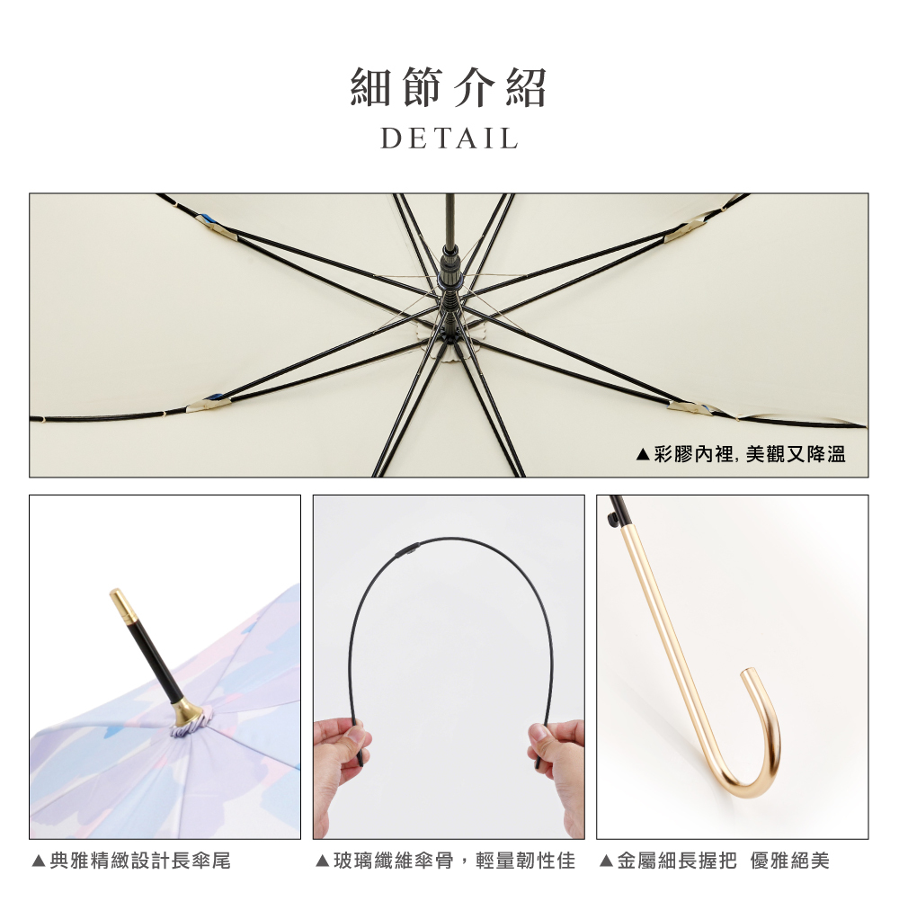 ‧玻璃纖維傘骨,彈性佳、堅韌耐風不易斷裂