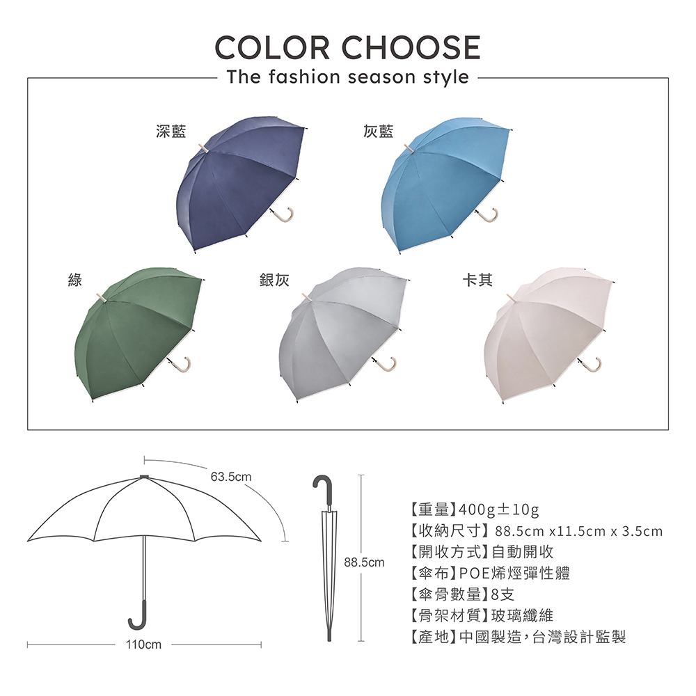 ‧玻璃纖維傘骨,防風耐用