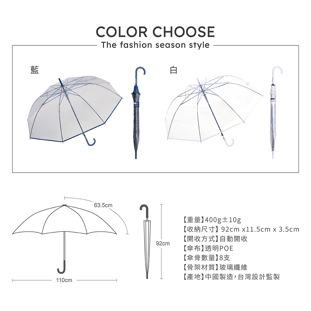 ‧透明POE傘布,視野清晰不遮擋