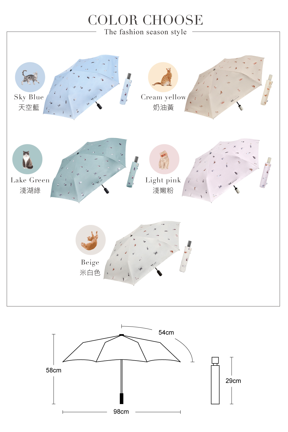 【品名】萌貓百科-全遮光抗UV省力自動開收傘