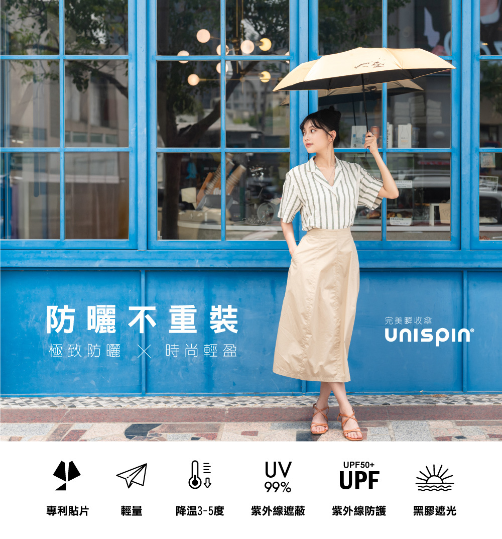 【品名】Unispin 熱帶島嶼 黑膠防曬三折完美瞬收傘