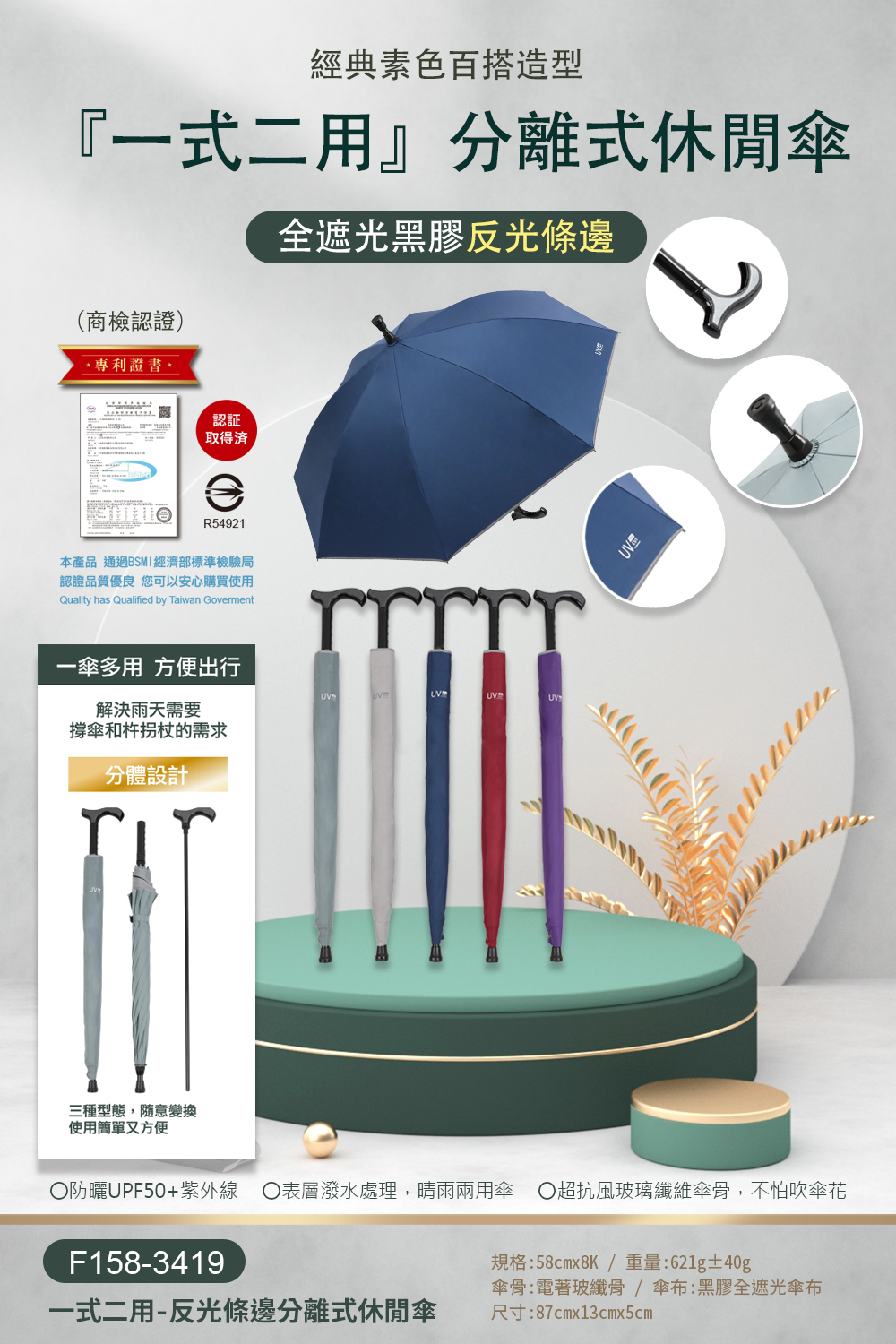 -一式兩用 分離式休閒傘(雨傘+手杖)